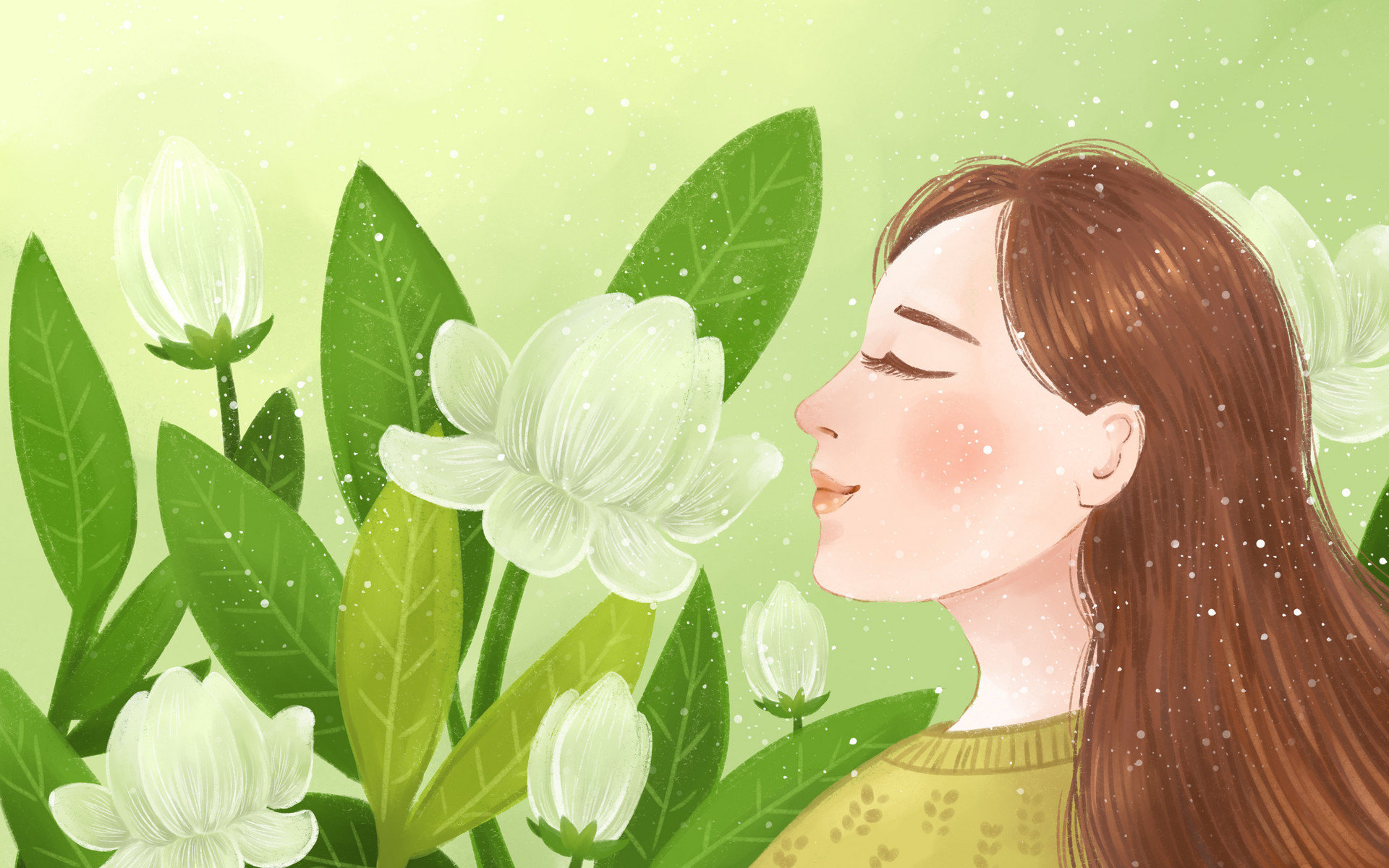 她手指拂过柳枝,柳枝就吐出嫩芽,随风摇摆;她向桃树绽开微笑,枝上就开满花朵,香气袭人;她走过草地,小草就探出小脑袋,不住点头……