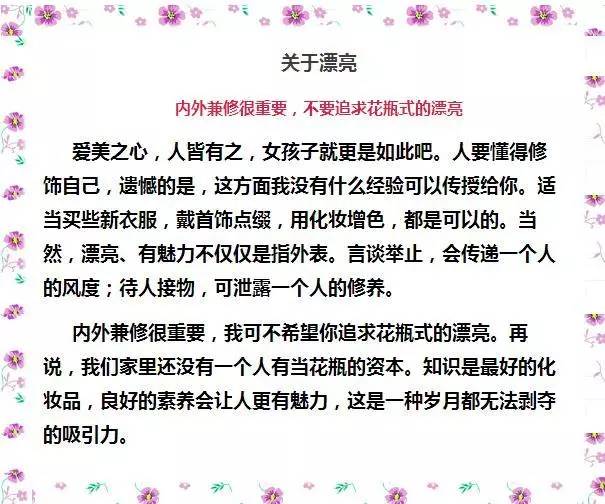 今天,与各位家长分享一篇来自江西财经大学人文学院吴辉副教授在女儿即将读大学时提出的9条忠告,字字句句使人深思,,真真切切的道出了无数父亲的心声,这篇文章获得了无数家长的盛赞。希望家长们耐心看完,在教育孩子的道路上,每一对父母都是不完美的,都是在不断的自我完善当中,学习借鉴人家良好的教子经验未尝不是一件有意义的事呢?