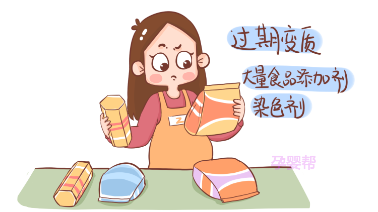 一般来说,含有添加剂、染色剂的食物,往往颜色会比较鲜艳,很容易认出来,不过会比较美味。但是孕妈们还是要克制好自己啊,对于这些东西,要坚决的说:“不”。